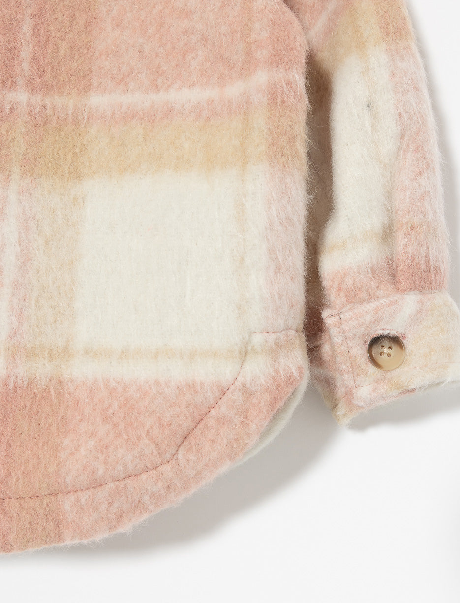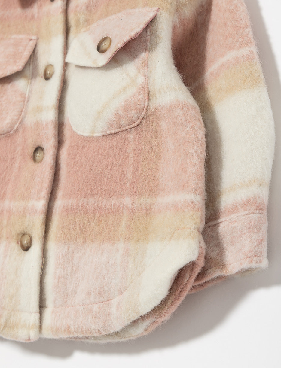 A plaid shacket designed for little girls. Comfortable and practical with pockets, it’s easy to layer and adds a trendy touch to everyday outfits.