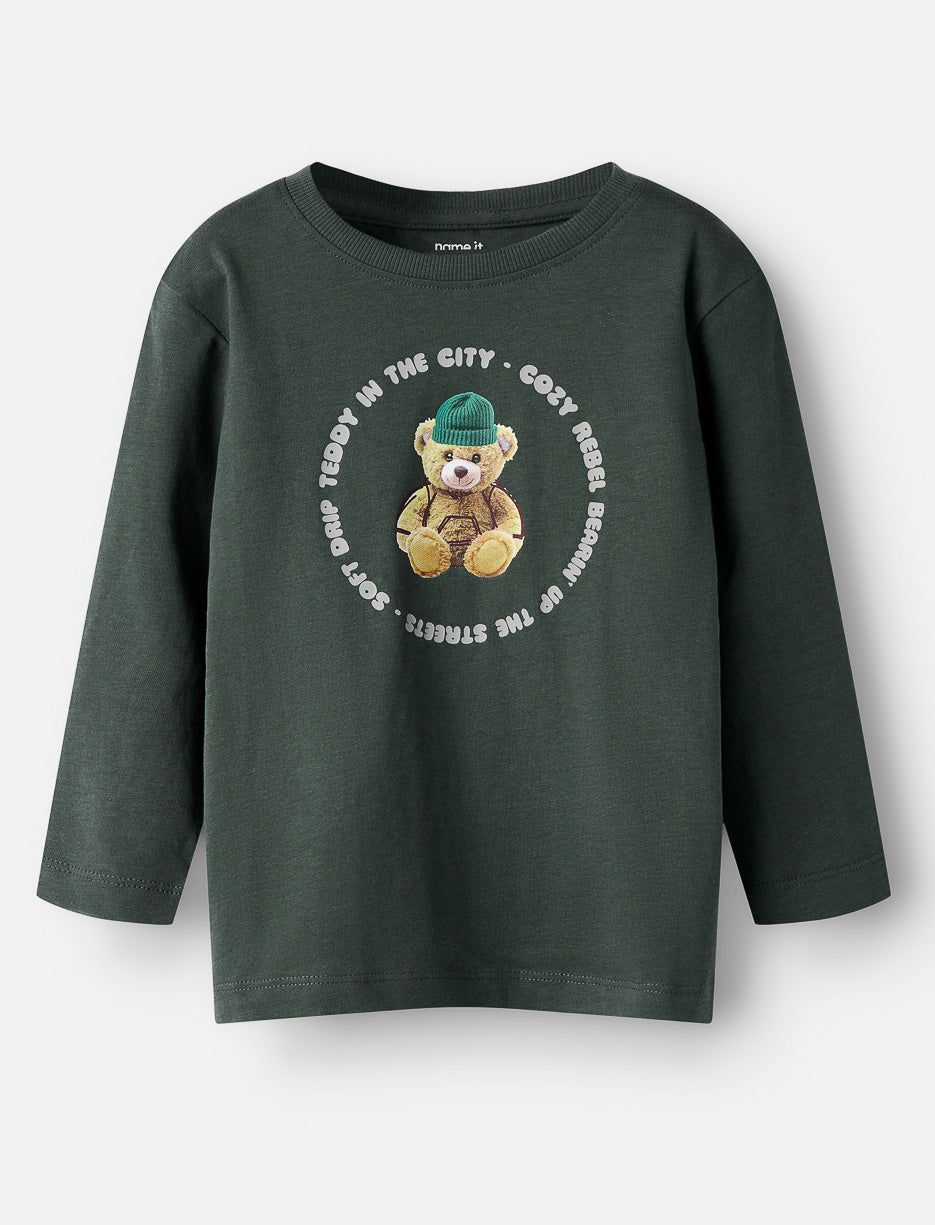 This comfortable and versatile T-shirt for little boys features a classic crew neck and long sleeves for full coverage. Perfect for cooler days, it pairs easily with other pieces in his wardrobe. The printed design adds a touch of personality to his everyday style. Ideal for school, playtime, or family outings, this T-shirt combines practicality and comfort to keep your child feeling great all day long.
