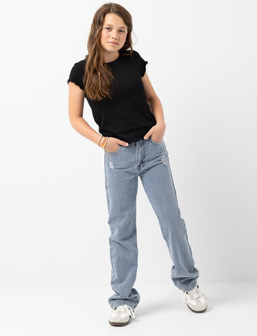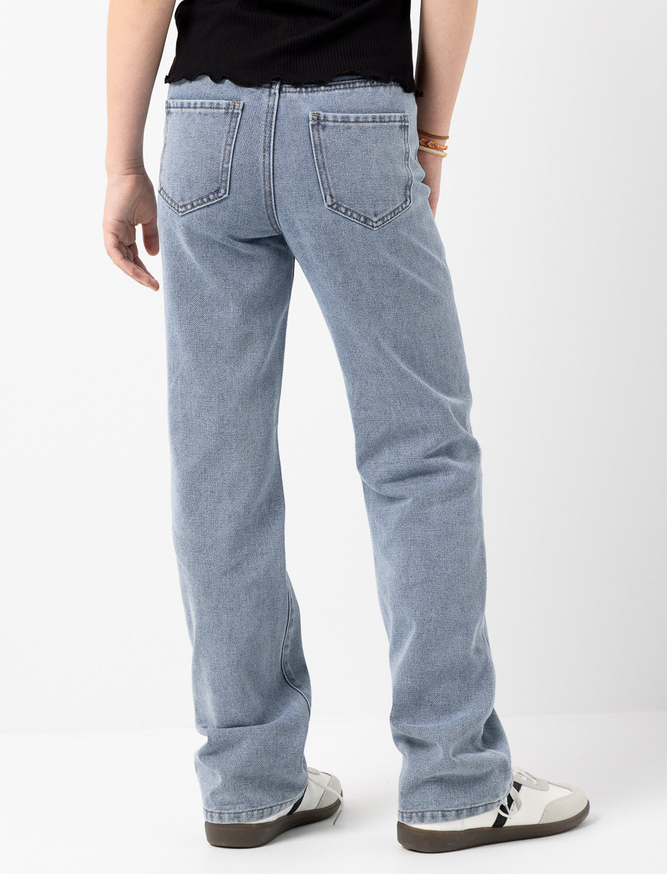 Give your teen a bold and stylish edge with these straight-leg jeans featuring sparkling rhinestones and trendy distressed details. A perfect pick to let her personality shine.