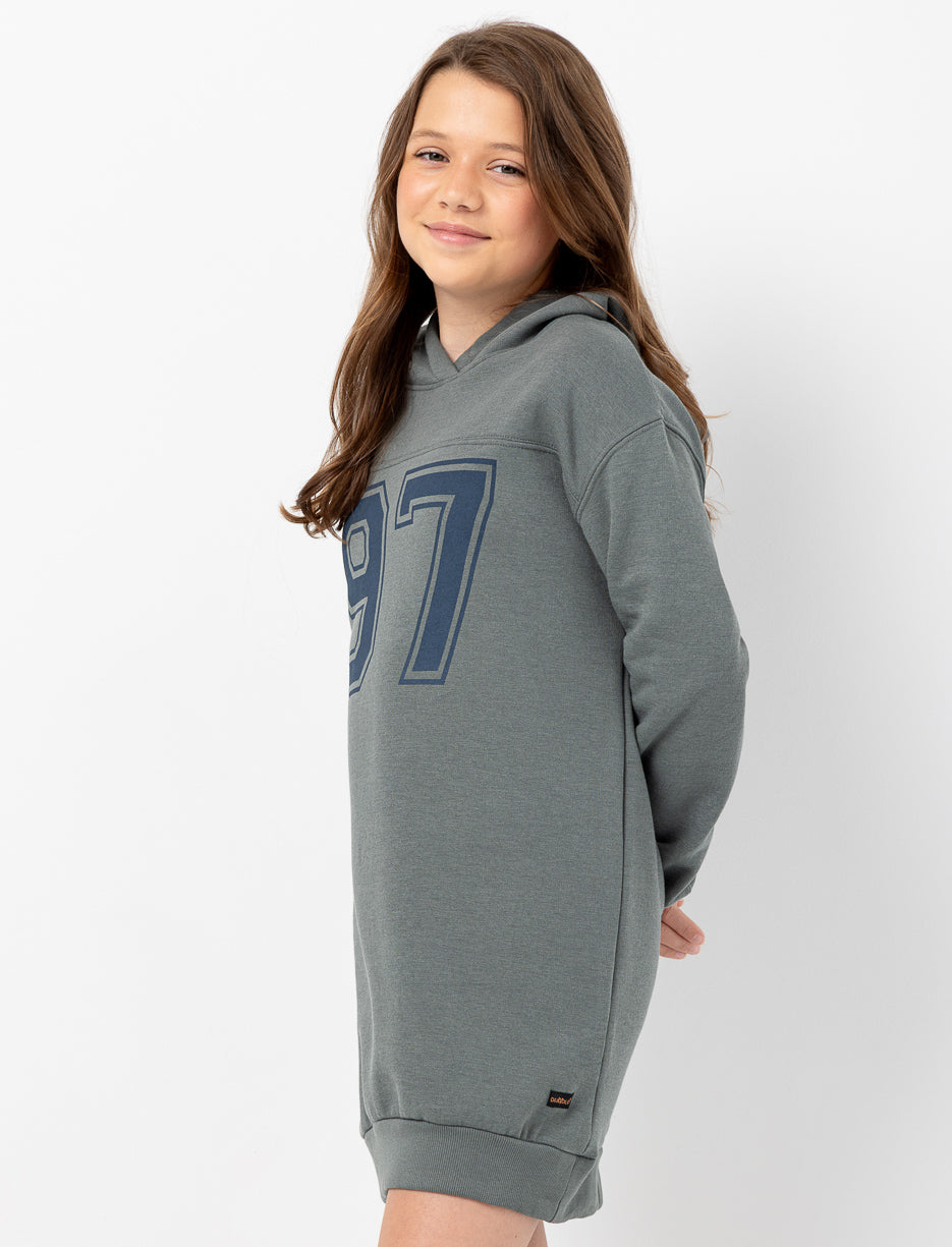 Combining casual comfort and sporty style, this printed hoodie dress is perfect for keeping up with the active pace of young teens.