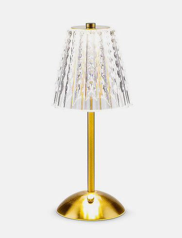 Brighten your evenings with elegance using this crystal LED rechargeable table lamp. With 3 brightness levels, it measures 12 in, includes a USB cable and runs for 5 to 10 hours.