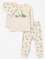 A soft and adorable outfit for little dinosaur fans! It includes a long-sleeve t-shirt, comfy elastic-waist pants, and a matching bib. The perfect look for cozy, stylish days.