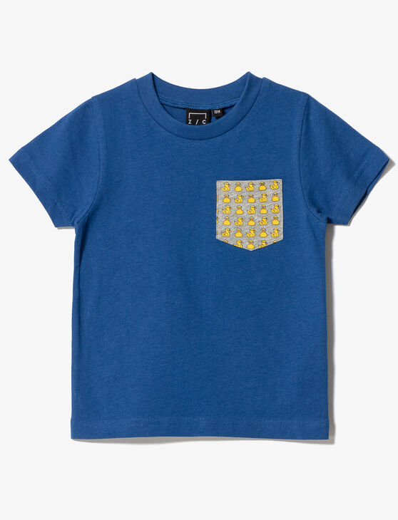 Add a playful twist to your little one's wardrobe with this adorable t-shirt, boasting a charming printed pocket for extra cuteness.
