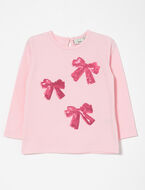 This sweet top sparkles with shiny glitter bows, the perfect detail to brighten up your little one’s everyday look.