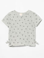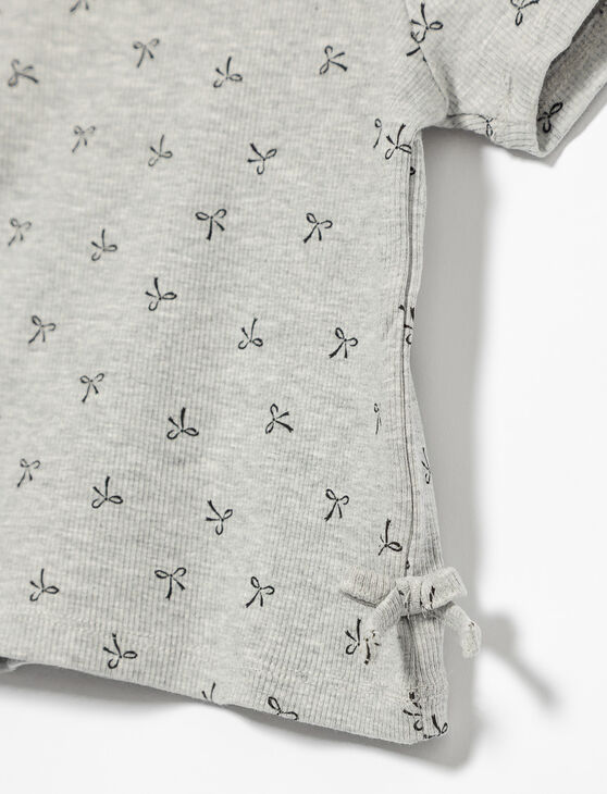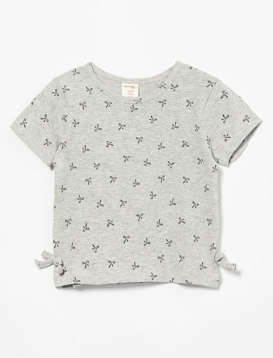Add a sweet twist to her outfit with this soft ribbed t-shirt, sprinkled with mini bows and finished with playful side knots.