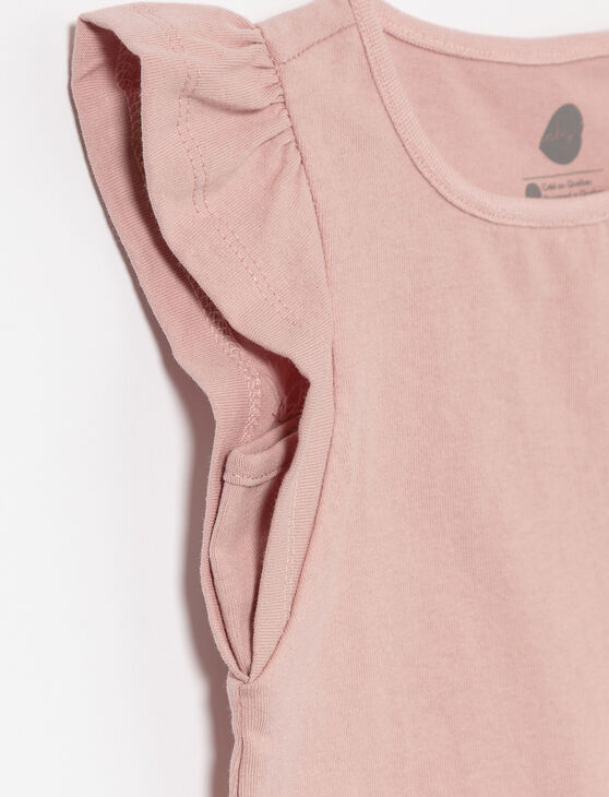 Frills, fun, and full of comfort, this ruffled tee is perfect for every little explorer on the go.