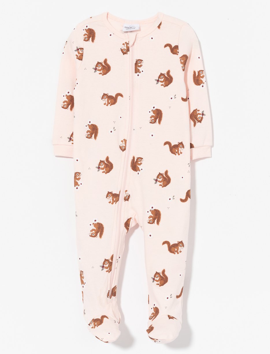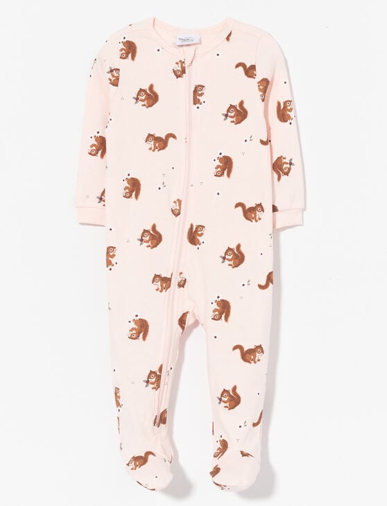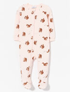 Softness guaranteed with this 1-piece organic cotton sleeper featuring a practical 2-way zipper and an adorable squirrel print. Perfect comfort for your baby’s nights.