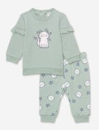 This 2-piece set combines comfort and charm with a delicately embroidered top and matching printed pants. Soft and practical, it’s perfect for your little one’s playtime and relaxation.