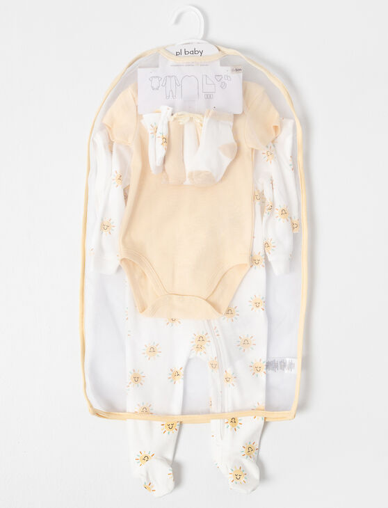A bright and adorable gift set to welcome baby with warmth and softness.