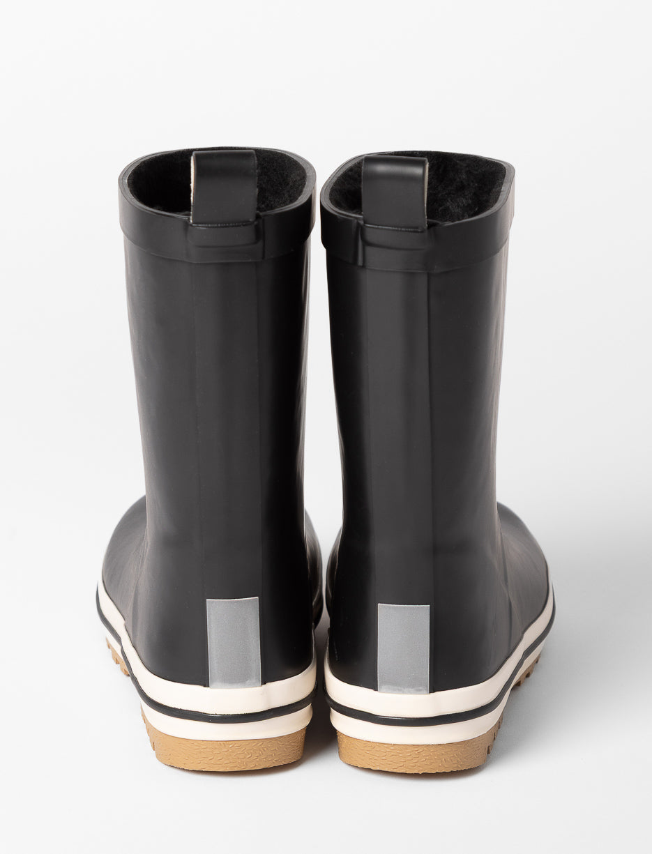 These lined rain boots keep little feet warm and comfy even on the rainiest days! The matte finish and contrast stripe add a modern touch, ready to follow your kid through every puddle-filled adventure.