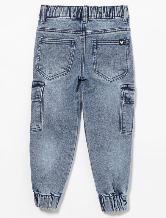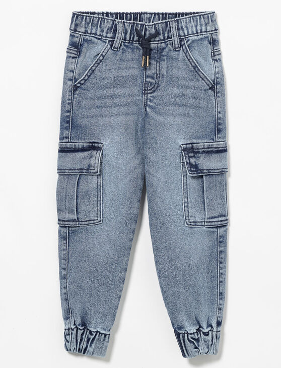 Give him a pair of jogger jeans as tough as his energy! These stretch denim cargo joggers with an elastic waistband and flap pockets are ready to follow your boy on every adventure.