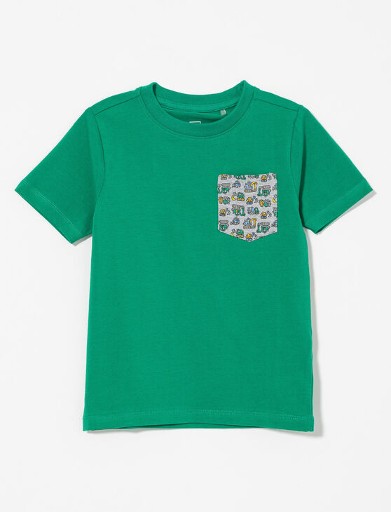 Solid T-shirt with Printed Pocket - Little Boy