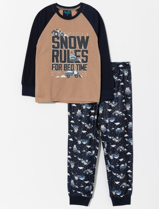 This printed two-piece pajama set keeps your boy warm and cozy all night long. Soft and comfortable, it’s perfect for snug evenings and snowy dreams.