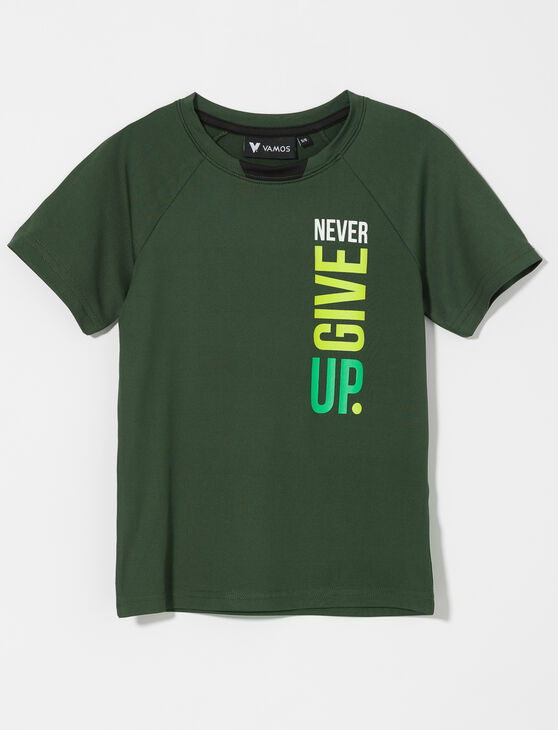 Perfect for staying active, this little boys’ sports crew neck T-shirt with front print combines comfort and style for all his daily activities.