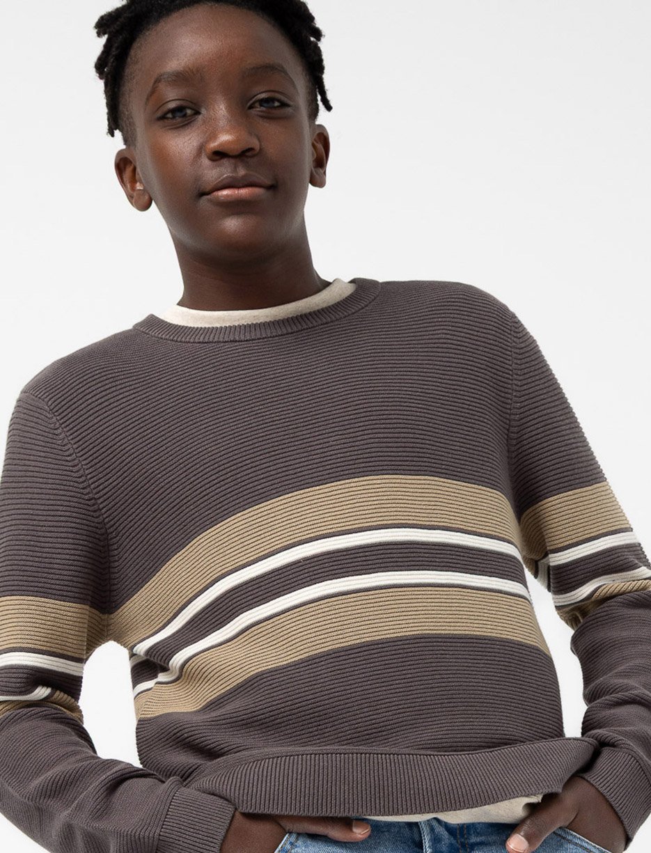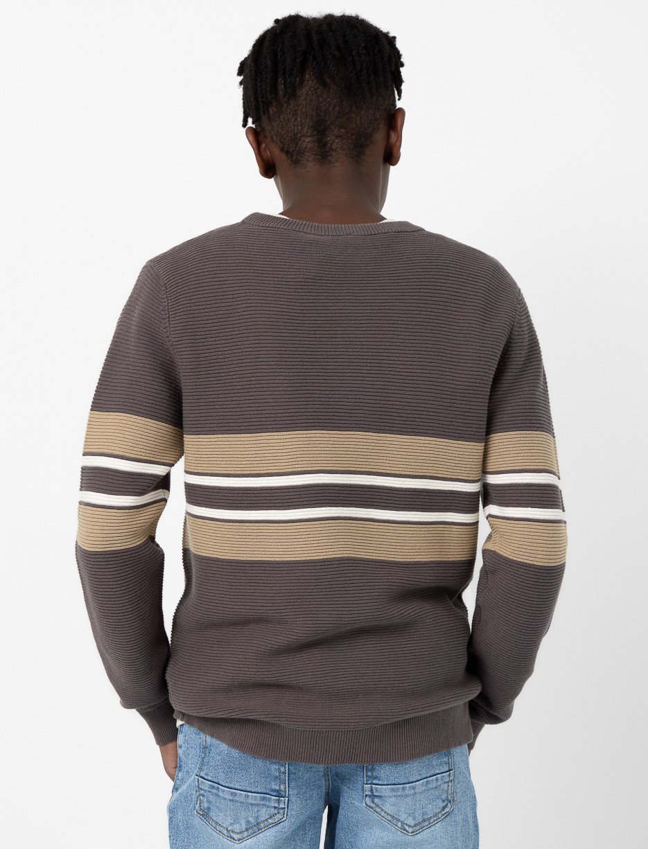 Bring cozy style to his wardrobe with this soft colour block knit sweater, perfect for keeping your boy warm while looking cool.