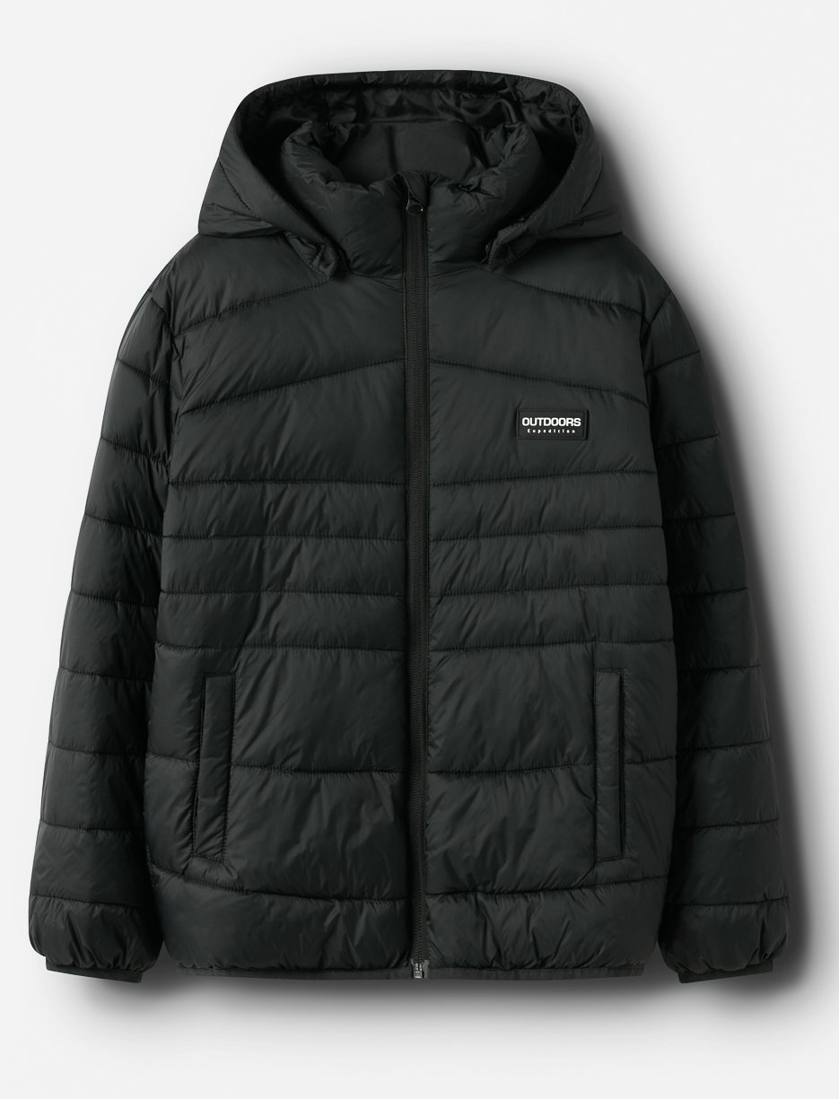 Comfortable and lightweight, this mid-season quilted jacket with detachable hood and zip closure offers practical protection. A reflective band at the back adds visibility.