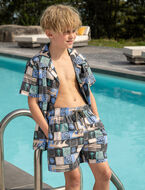 This printed hybrid boardshort offers comfort and easy movement with its elastic drawstring waist. Practical pockets and side vents make it perfect for playing, running or enjoying the beach with total ease.