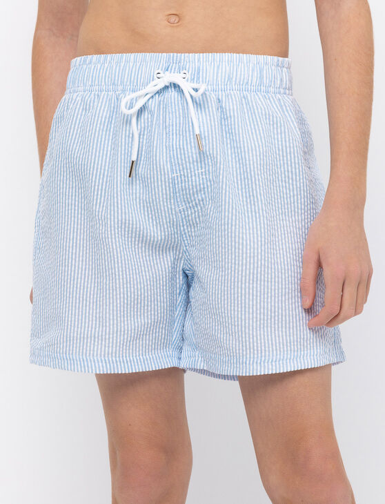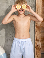 These striped boardshorts are perfect for beach or pool days. Designed with an elastic waistband and drawstring, they offer a comfortable fit, while pockets and a small side slit add everyday practicality.