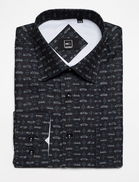 This dress shirt gives you a polished look while playing with subtle printed details.