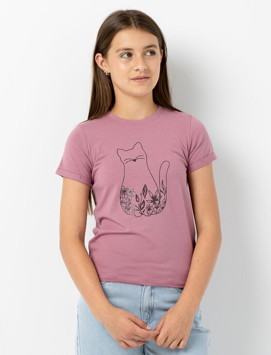 Perfect for little cat lovers, this t-shirt features a charming feline design that adds a sweet and stylish touch to her everyday looks.