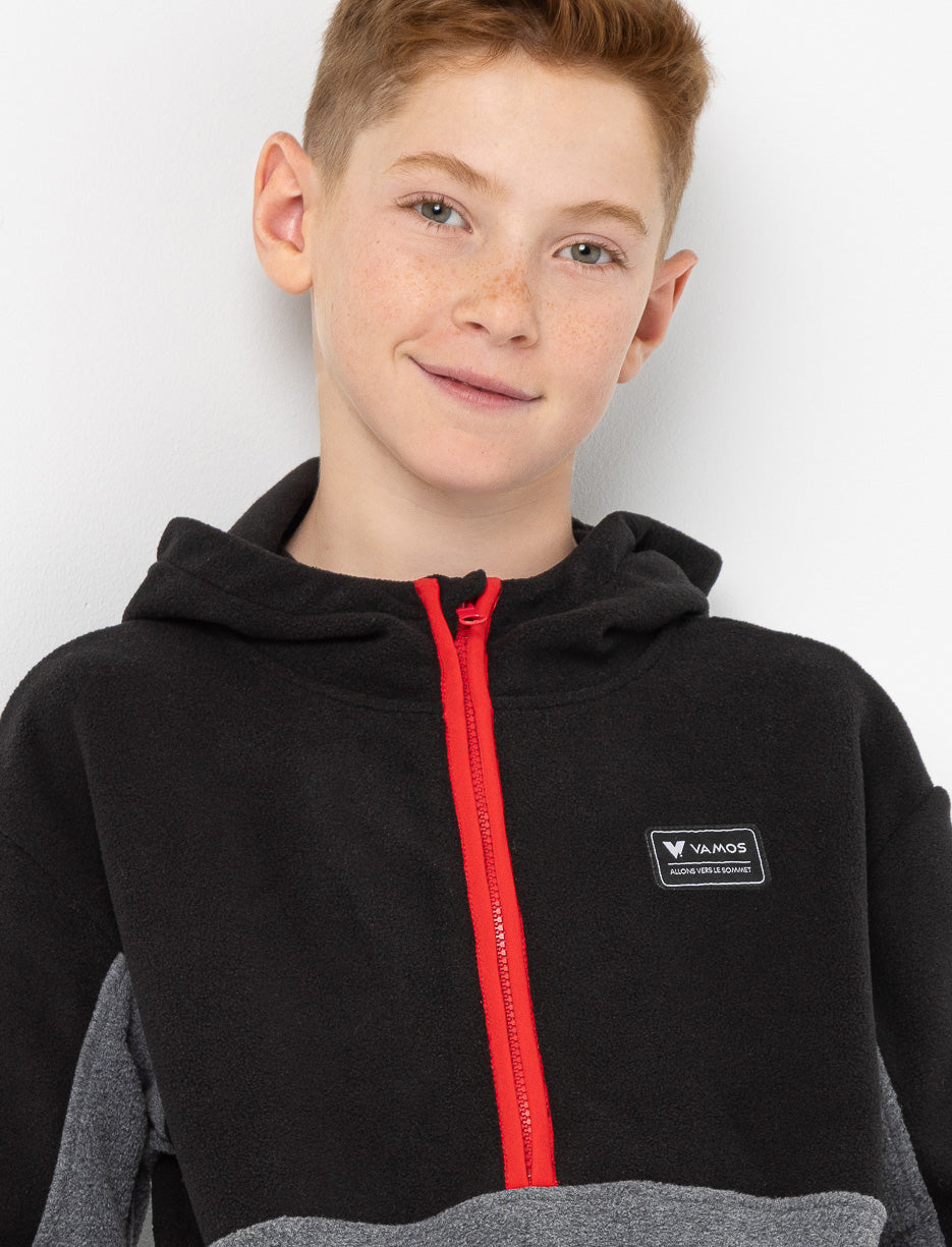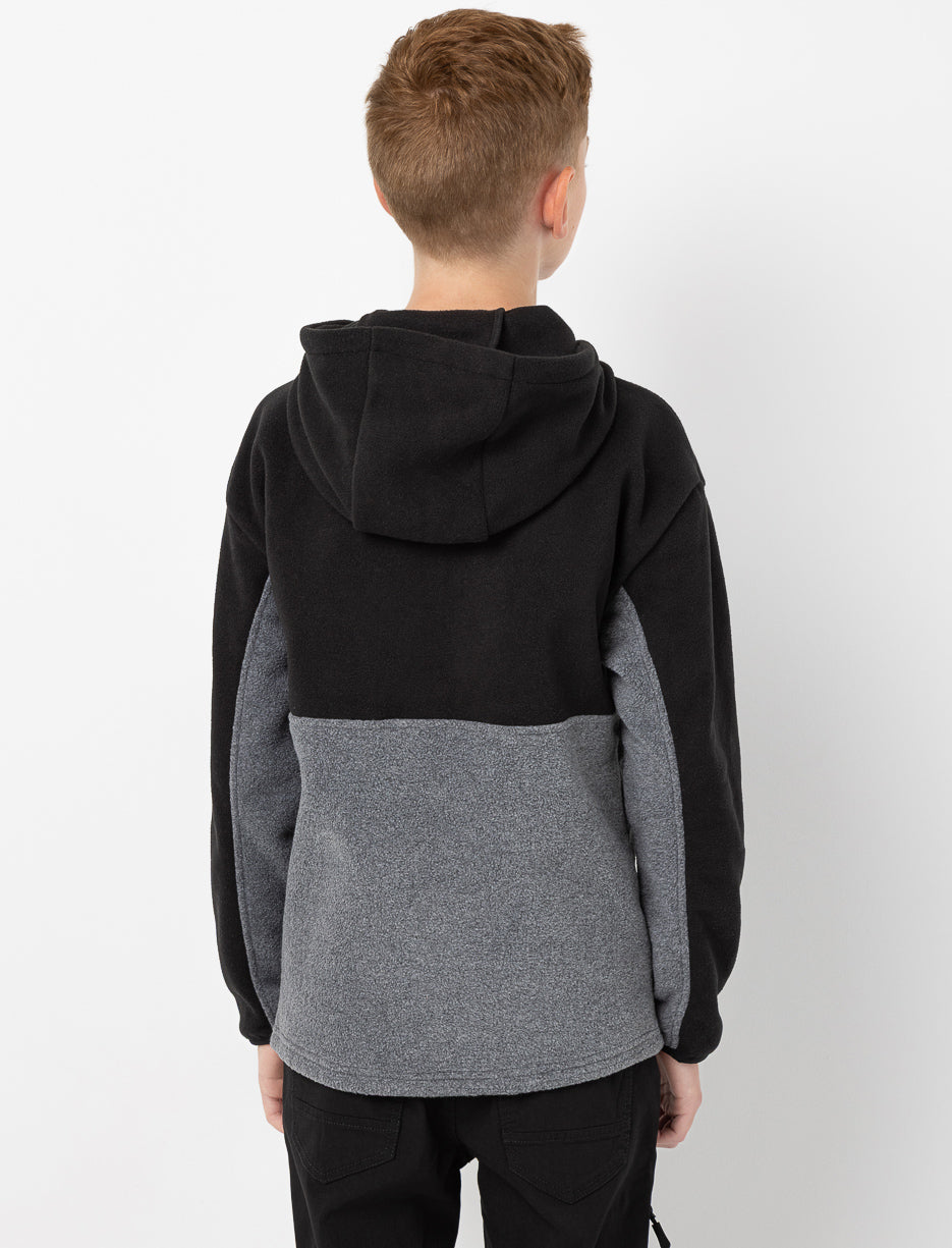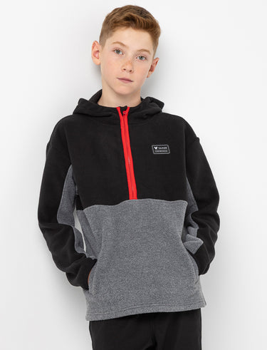 Designed for chilly days, this fleece hoodie provides warmth and comfort. With a half-zip front, kangaroo pocket, and color block design, it's a practical and stylish everyday layer.