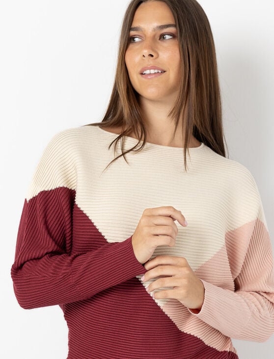 Make a bold statement with this colour block knit sweater, designed to bring a modern and stylish edge to your everyday outfits.