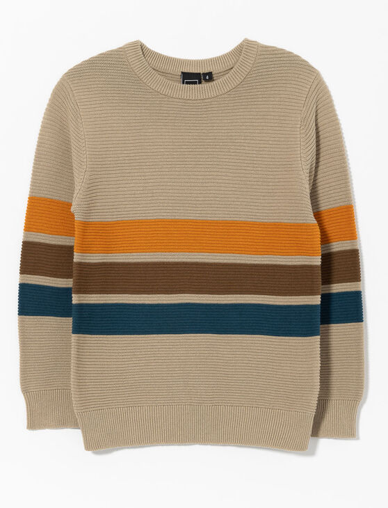 Bring cozy style to his wardrobe with this soft colour block knit sweater, perfect for keeping your boy warm while looking cool.