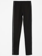 Skinny pants for teen girls with elastic waist. Solid color accented by contrasting side stripes, adding a sporty and modern touch to everyday outfits.