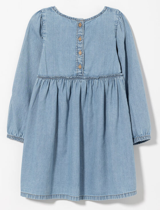 Laissez votre petite bouger et jouer librement dans cette robe en denim souple, pensée pour offrir confort et style au quotidien.