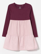 Fall for this comfy long-sleeve dress with playful prints and a tiered skirt. Easy to wear and full of charm, it's the perfect go-to for everyday adventures.
