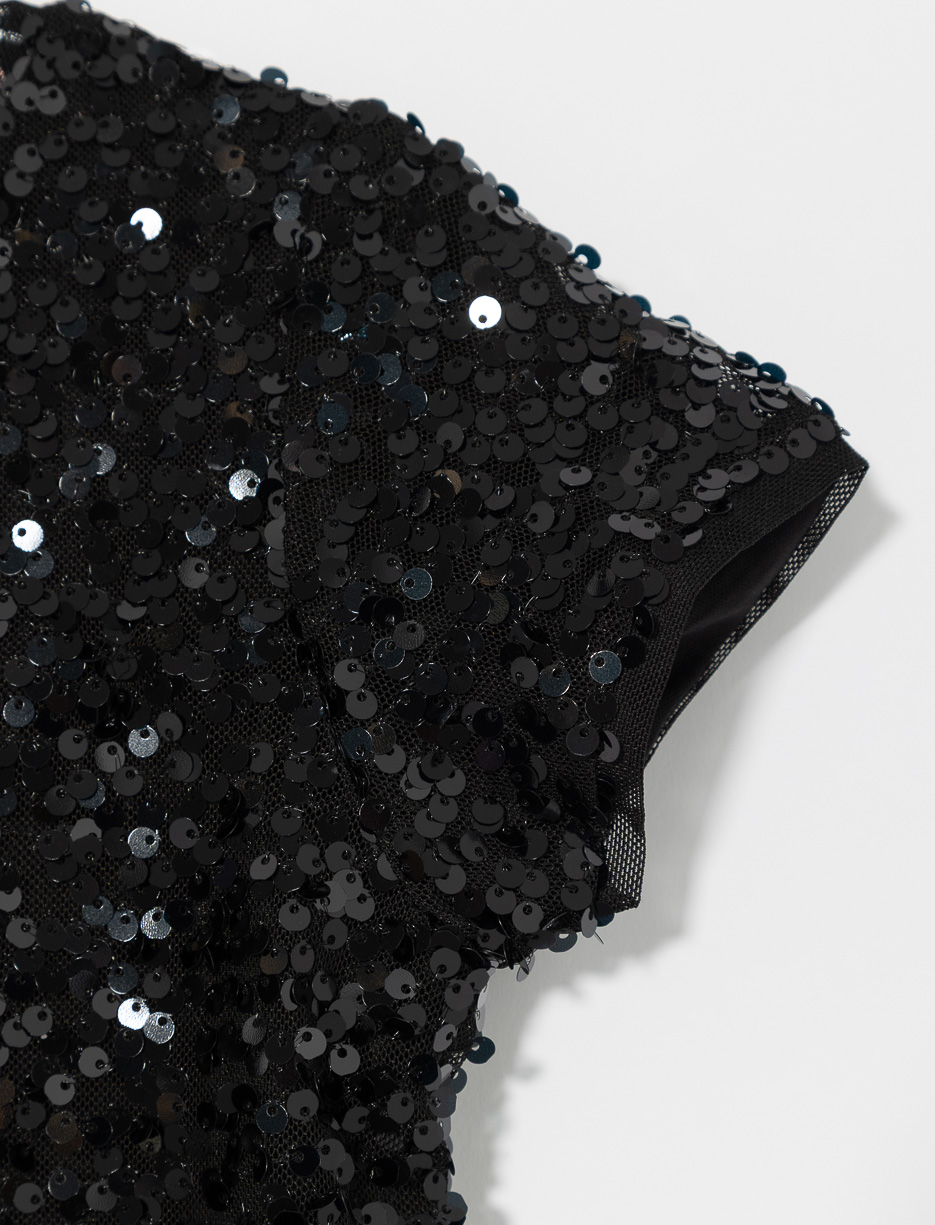 Make her shine! This short-sleeve sequin dress sparkles with every move, featuring a comfy straight fit and dazzling finish. Perfect for parties or special occasions.