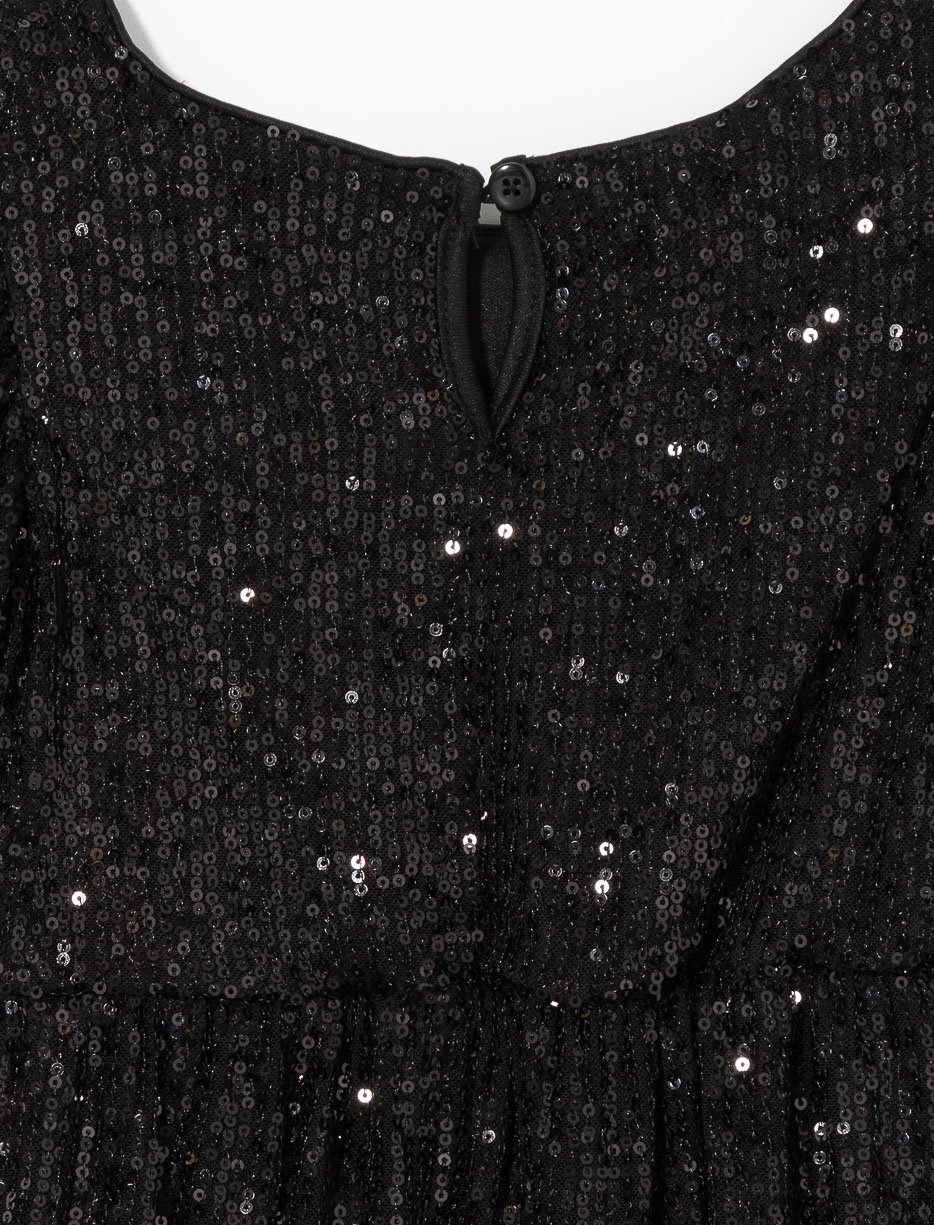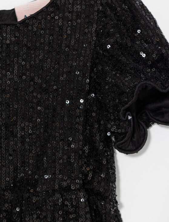 Let your little one sparkle in this adorable puff-sleeve sequin dress. Perfect for parties or special occasions, it turns every moment into a fairytale celebration.