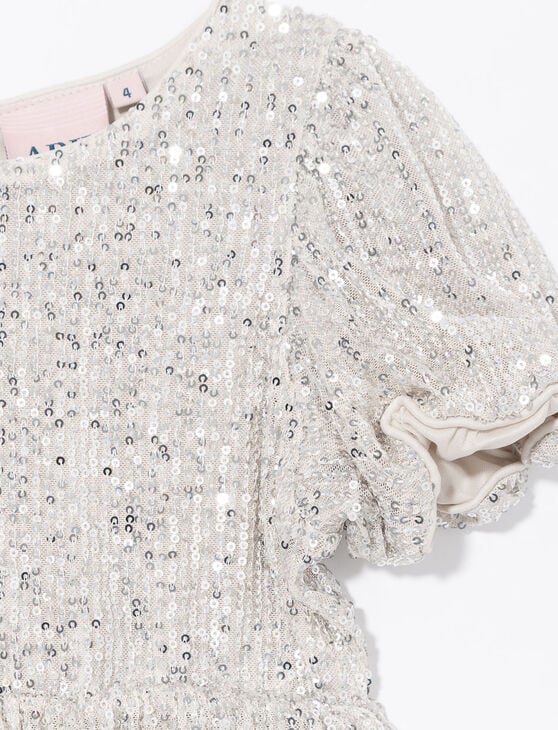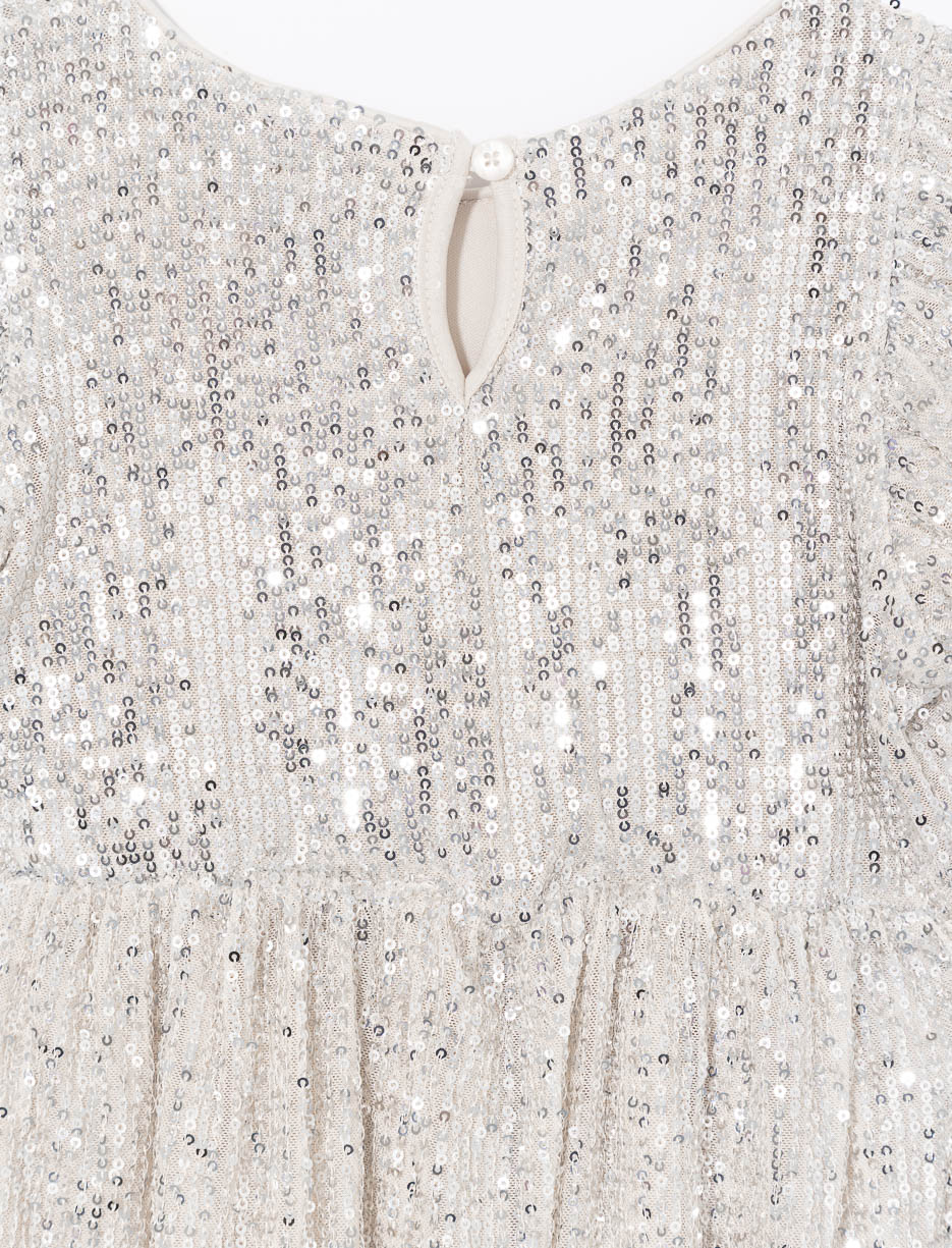 Let your little one sparkle in this adorable puff-sleeve sequin dress. Perfect for parties or special occasions, it turns every moment into a fairytale celebration.