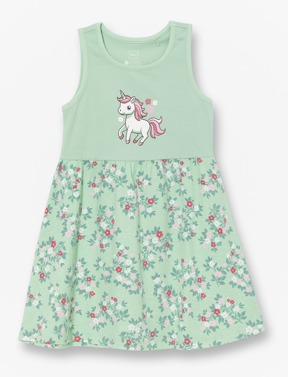 This sleeveless dress features a fitted top and a flared skirt, making it easy for your little one to move comfortably. Lightweight and soft, it’s perfect for everyday wear and active days.