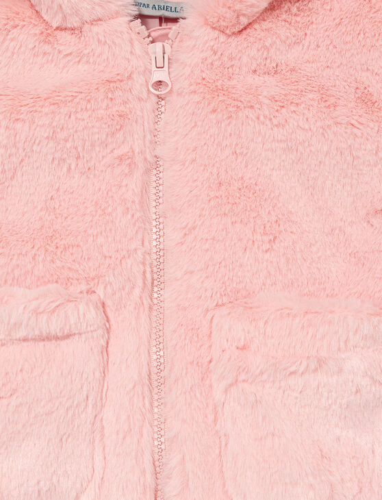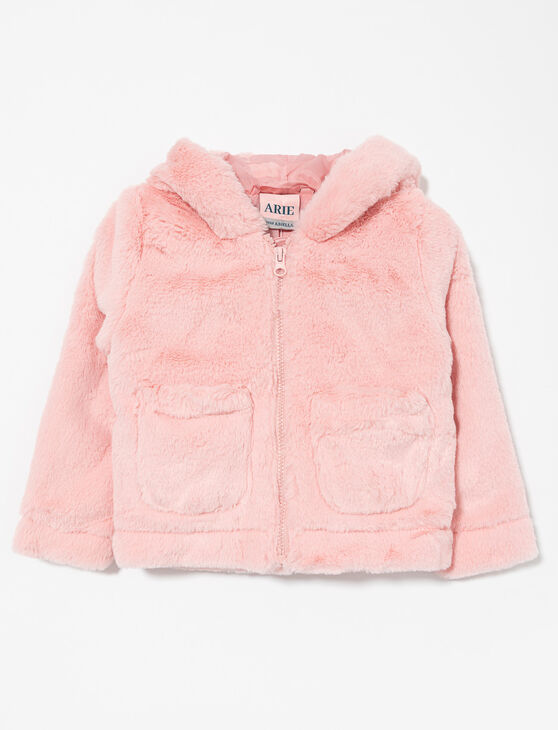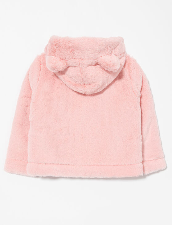 This soft jacket keeps your little one warm while adding an adorable touch with its ear hood.