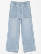 These wide-leg jeans combine comfort and style with patch pockets and a visible button fly. A great pick for a relaxed, on-trend outfit.