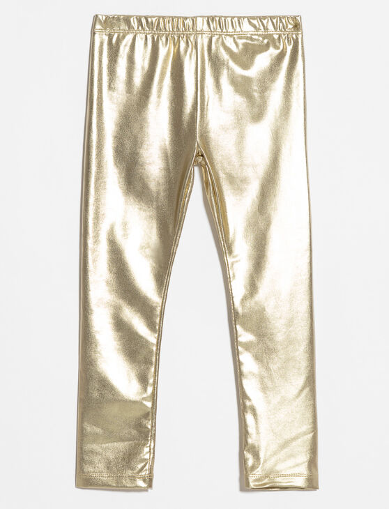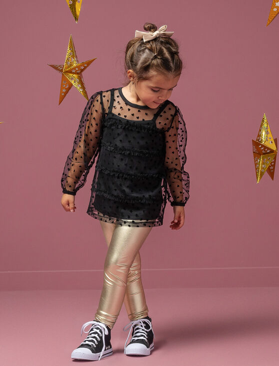 These dazzling gold leggings are a fabulous choice for adding some sparkle to any outfit. Perfect for parties or everyday glam, their stretchy fabric ensures comfort throughout the day, letting your little one shine and play without limits.