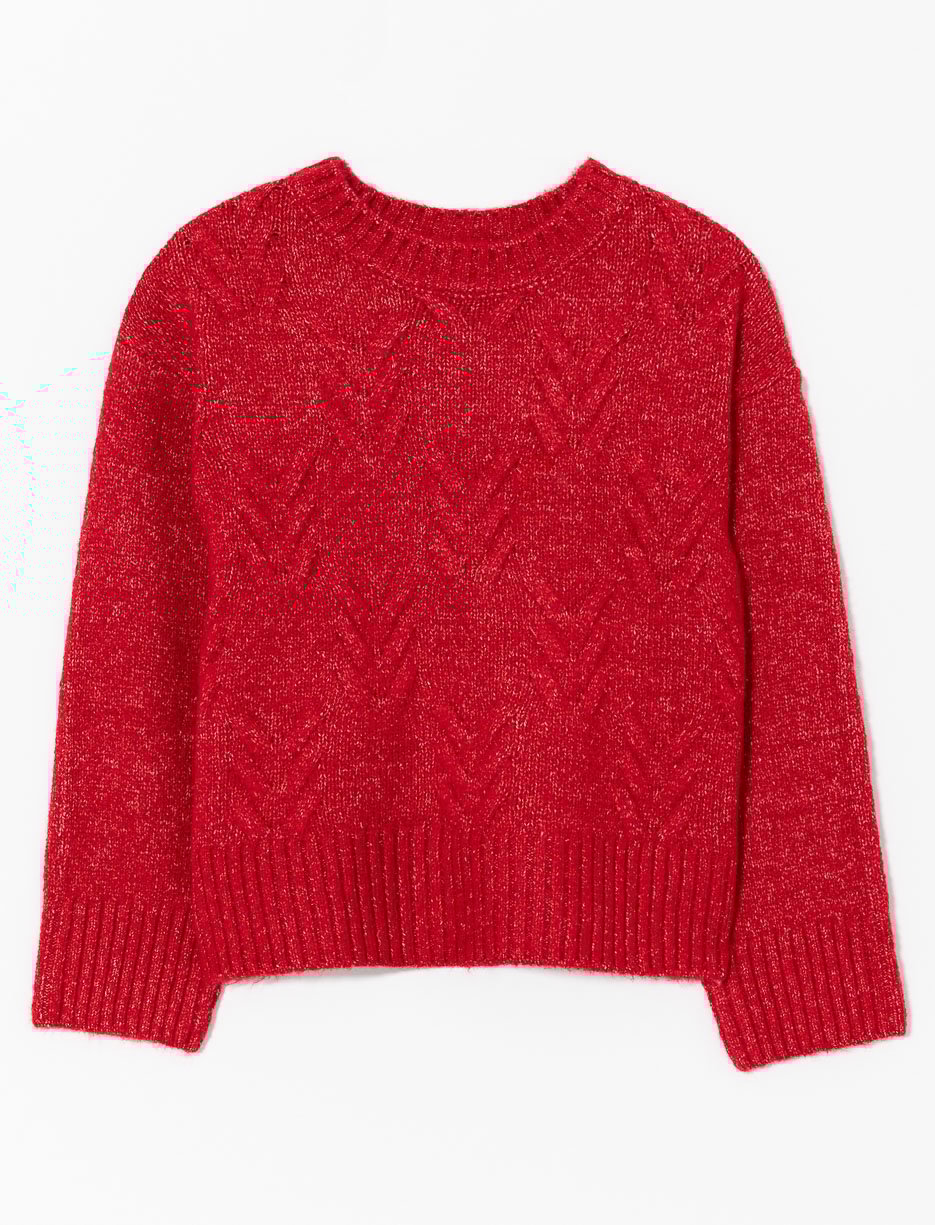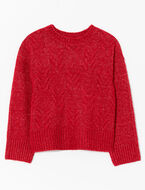 A must-have for her wardrobe! This front cable knit sweater keeps her cozy with its soft fabric and relaxed dropped-shoulder fit.