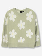 A soft knit sweater with long sleeves and dropped shoulders. Its round neck and delicate flowers bring cozy charm to cool days.