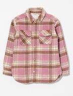 Trendy lined overshirt for teen girls with a plaid print, flap pockets, and button closure. Ideal for layering and adding style and warmth to any casual outfit.