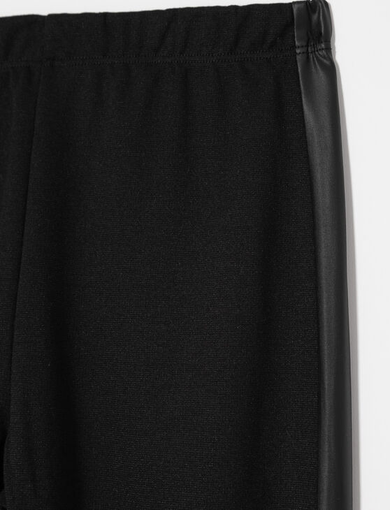 Skinny pants for teen girls with elastic waist. Solid color accented by contrasting side stripes, adding a sporty and modern touch to everyday outfits.