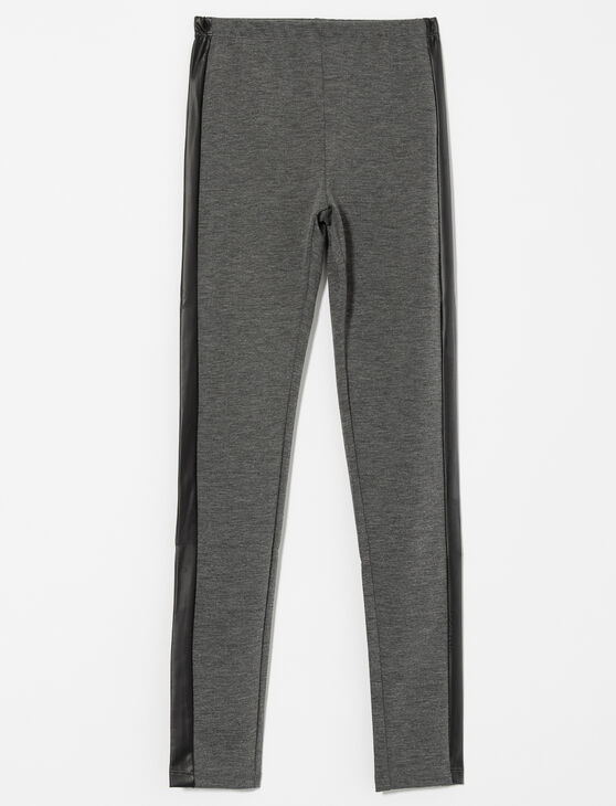 Skinny pants for teen girls with elastic waist. Solid color accented by contrasting side stripes, adding a sporty and modern touch to everyday outfits.