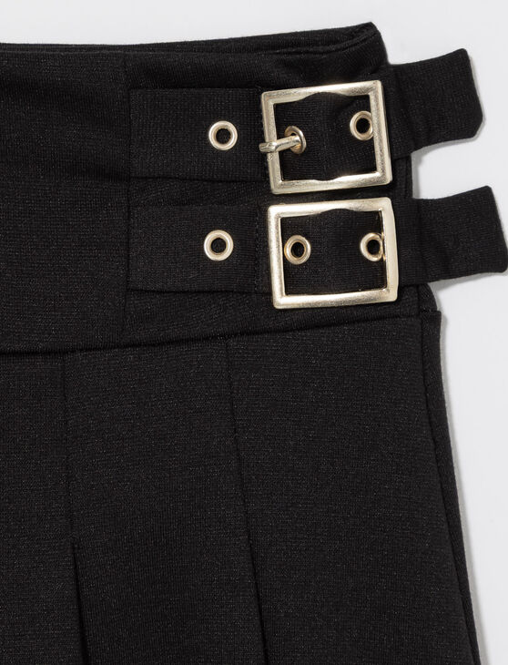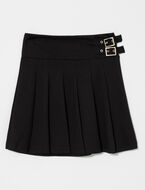 Add a trendy touch to your girl’s wardrobe with this pleated skirt featuring two side buckles. Easy to wear and perfect for school or outings, it combines comfort and style for everyday looks.