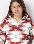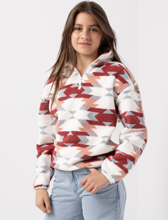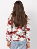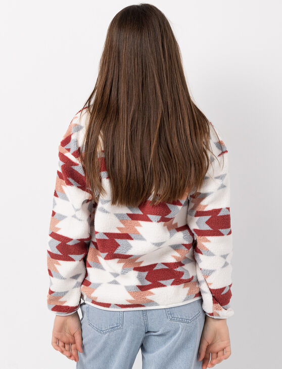 Keep your girl cozy with this half-zip Aztec pattern sherpa pullover, combining softness, comfort, and a unique style.