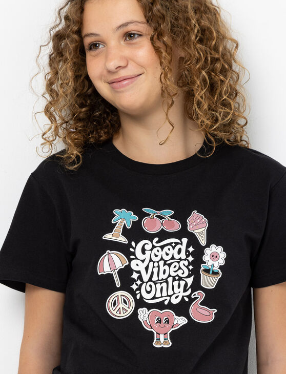 Printed crew neck t-shirt with a casual look. Its comfortable fit and playful print add a fresh touch to your girl’s wardrobe.