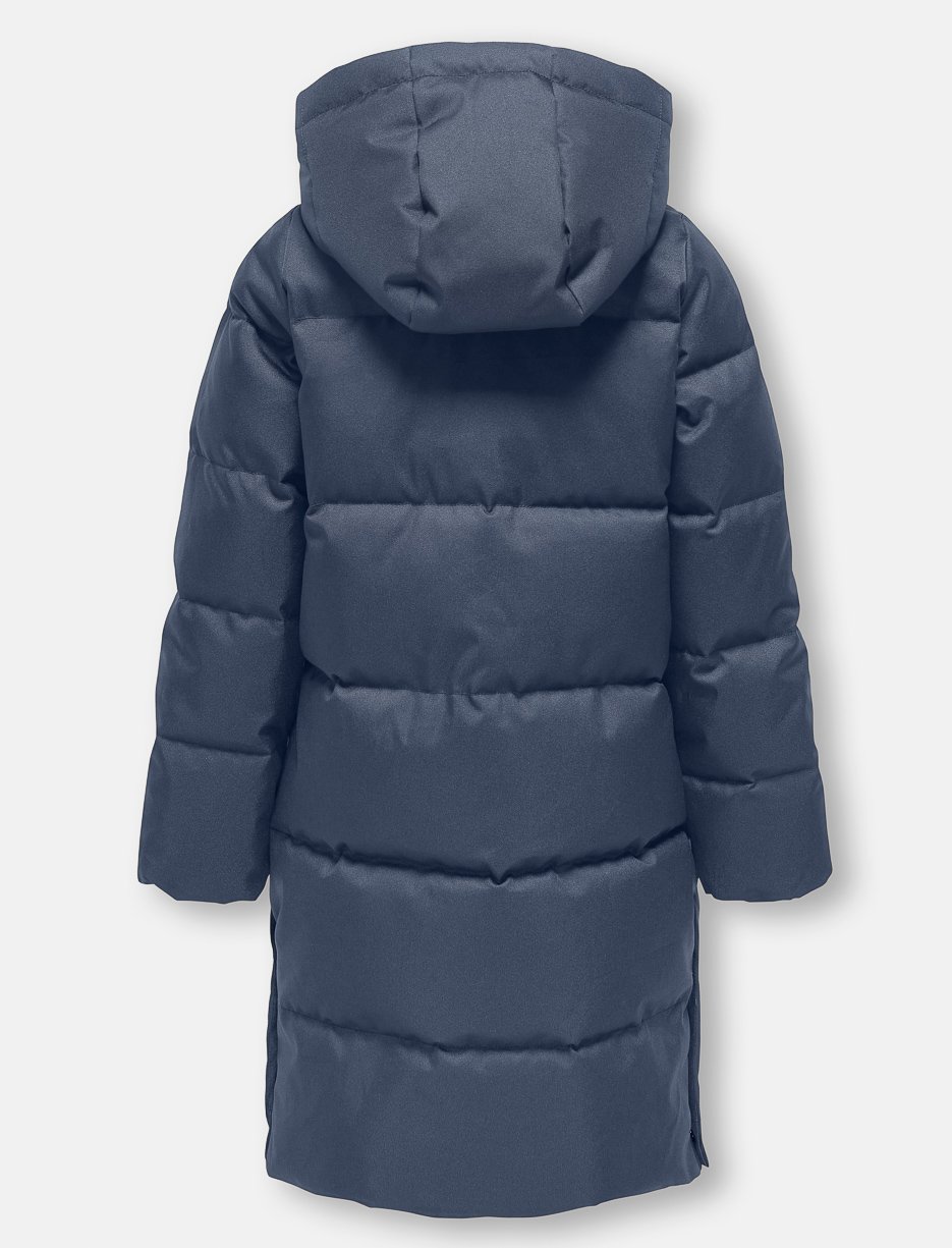 A long quilted coat with hood, designed to keep your girl warm while giving her a modern and practical look.