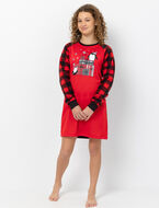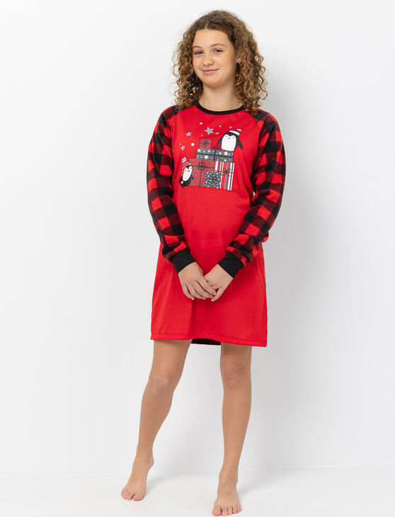 Perfect for the holiday season, this Christmas nightgown with plaid sleeves and penguin print wraps her in cozy comfort and festive charm. Ideal for those magical holiday nights!