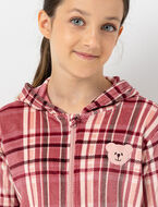 Featuring a classic plaid print and soft-touch fabric, this hooded onesie is ideal for keeping your girl cozy on chilly evenings. With a full-length zipper and snug cuffs, comfort is just a zip away.