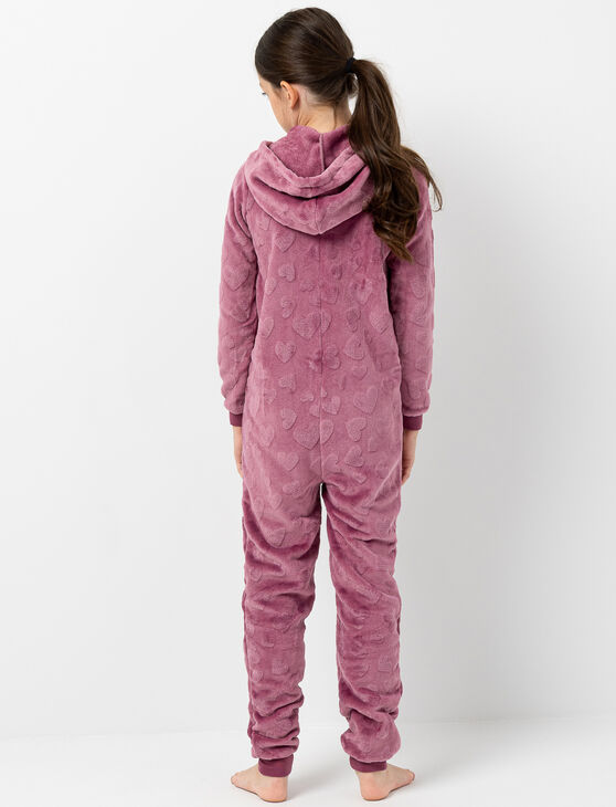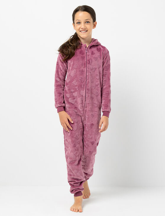Made for cozy evenings at home, this ultra-soft onesie wraps her in comfort. With a hood and embossed heart details, it brings a playful touch to her chill-out time.
