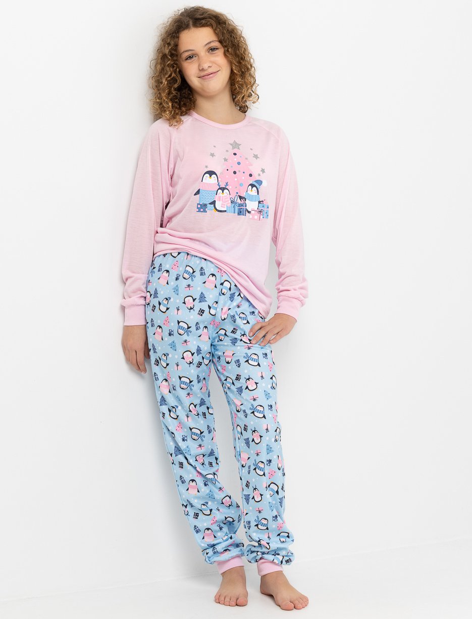 Bring holiday magic to bedtime with this cozy 2-piece printed pajama set. Made from soft brushed fabric to keep them warm and comfy all night long. Perfect for festive dreams by the tree!